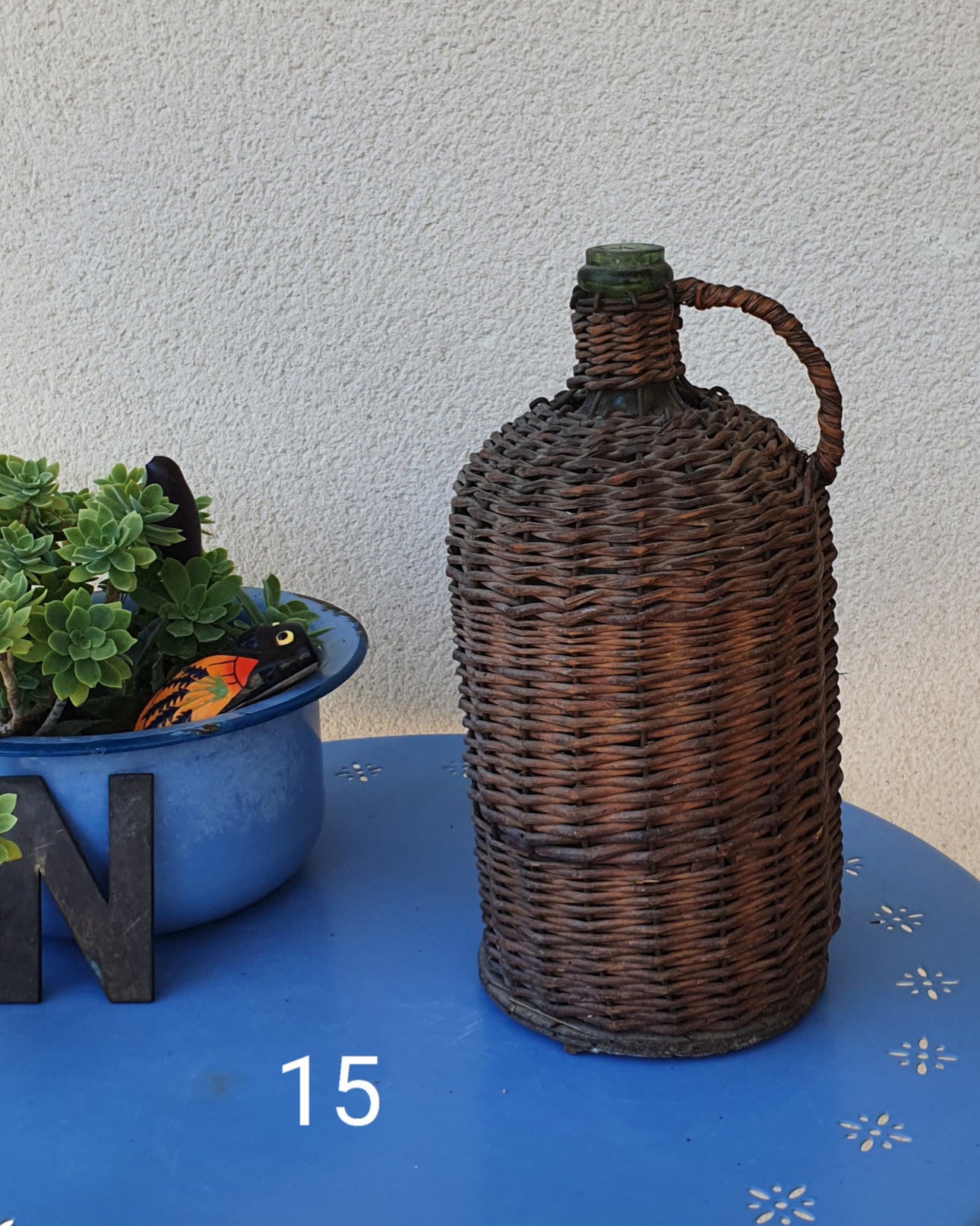 Dame Jeanne habillée d'osier tressé.