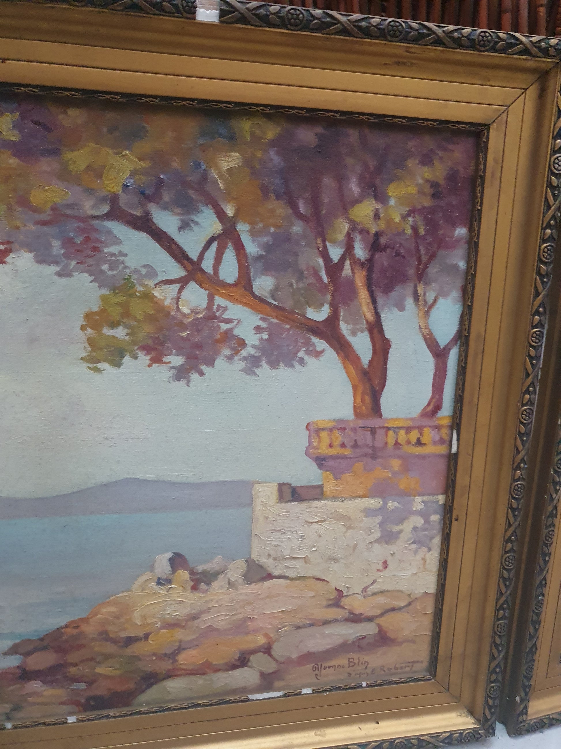 Très bon état pour les toiles, les cadres ont quelques manques visibles sur les photos.
